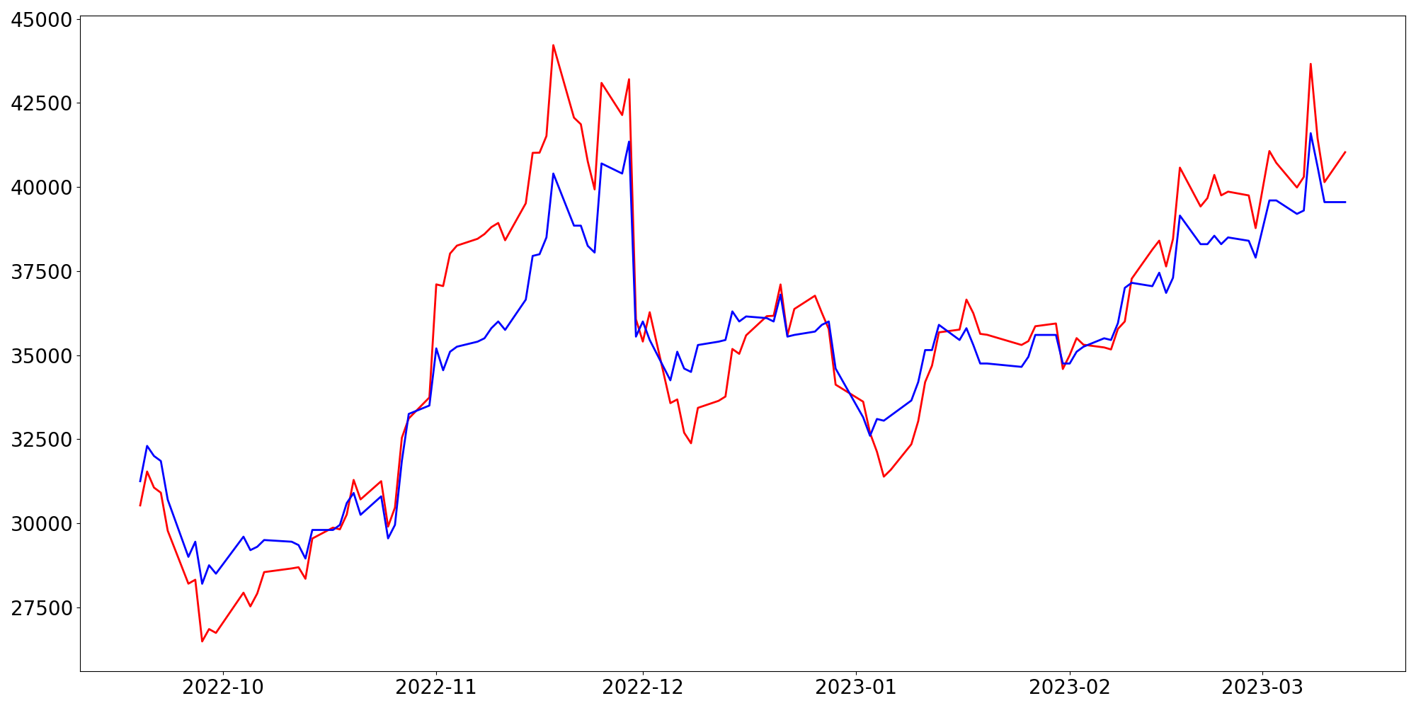 [ - : 실제값(종가) / - : 예측값(종가) ]