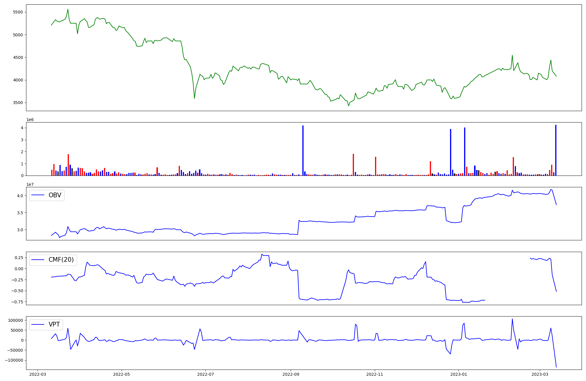 | OBV | CMF | VPT | |