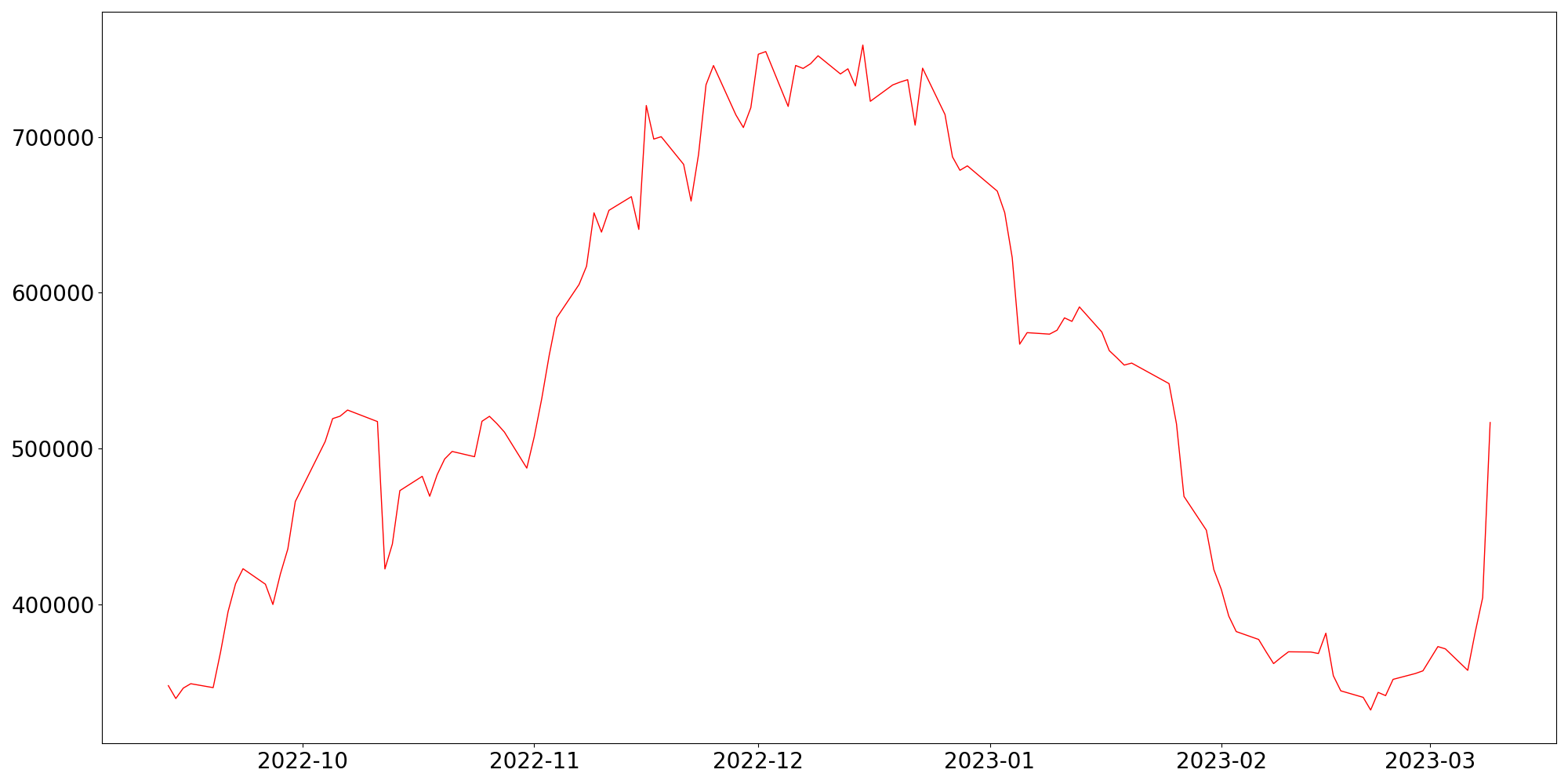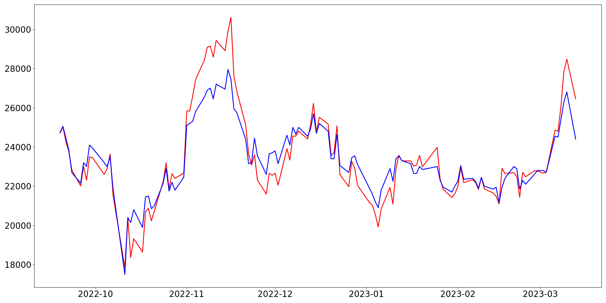 [ - : 실제값(종가) / - : 예측값(종가) ]