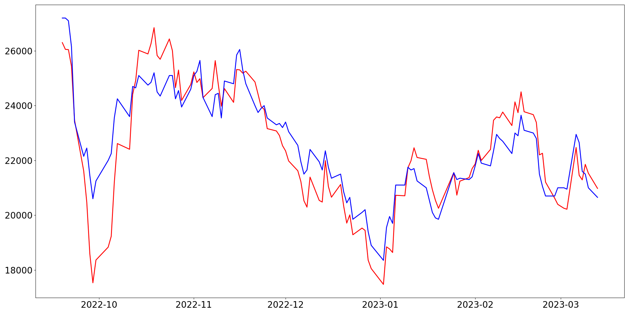 [ - : 실제값(종가) / - : 예측값(종가) ]