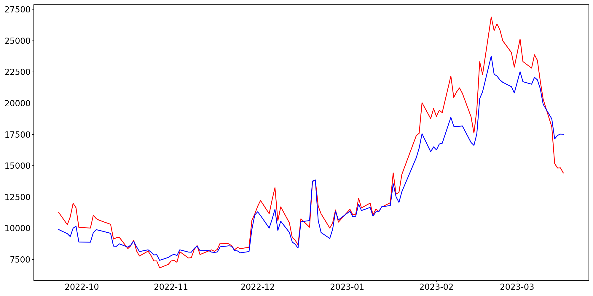 [ - : 실제값(종가) / - : 예측값(종가) ]