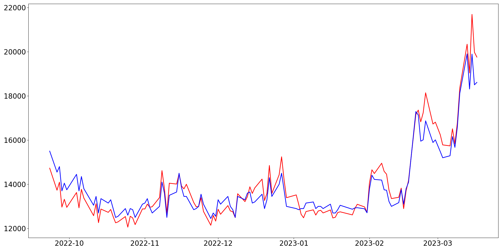 [ - : 실제값(종가) / - : 예측값(종가) ]