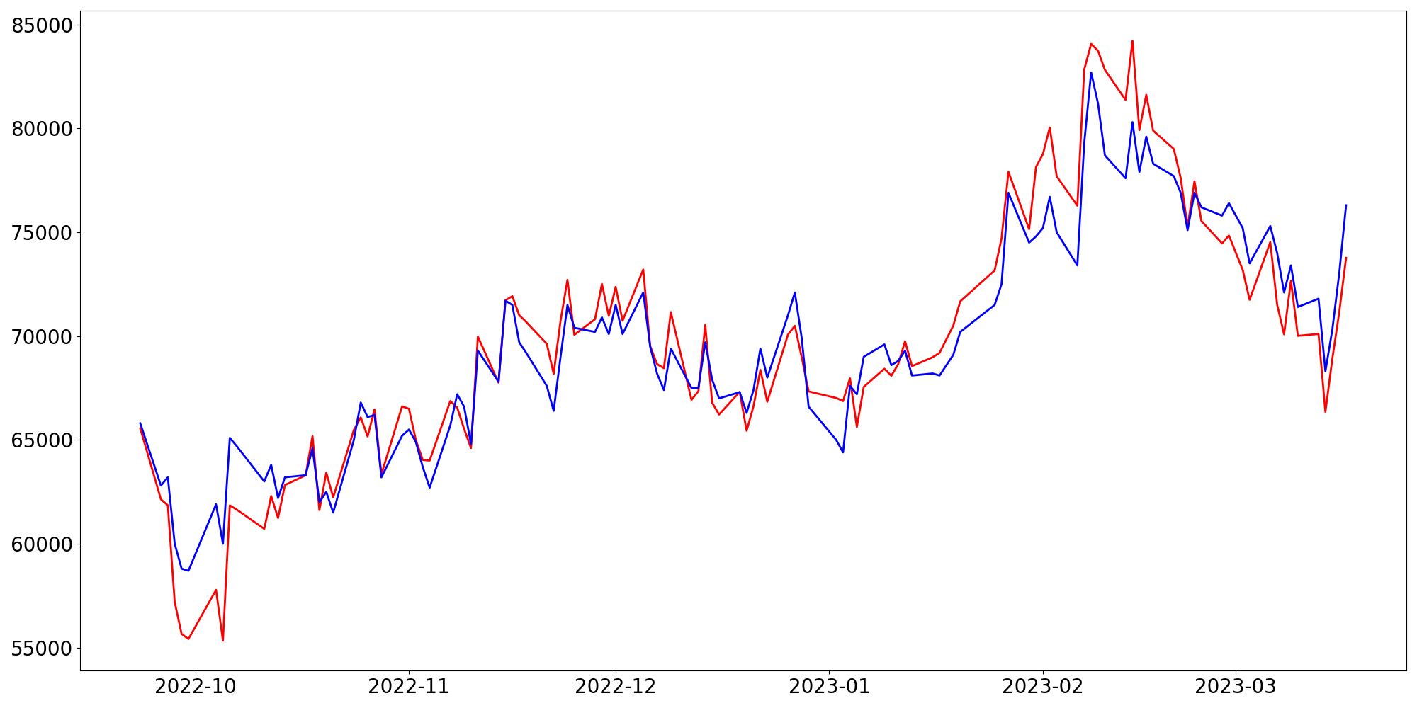 [ - : 실제값(종가) / - : 예측값(종가) ]