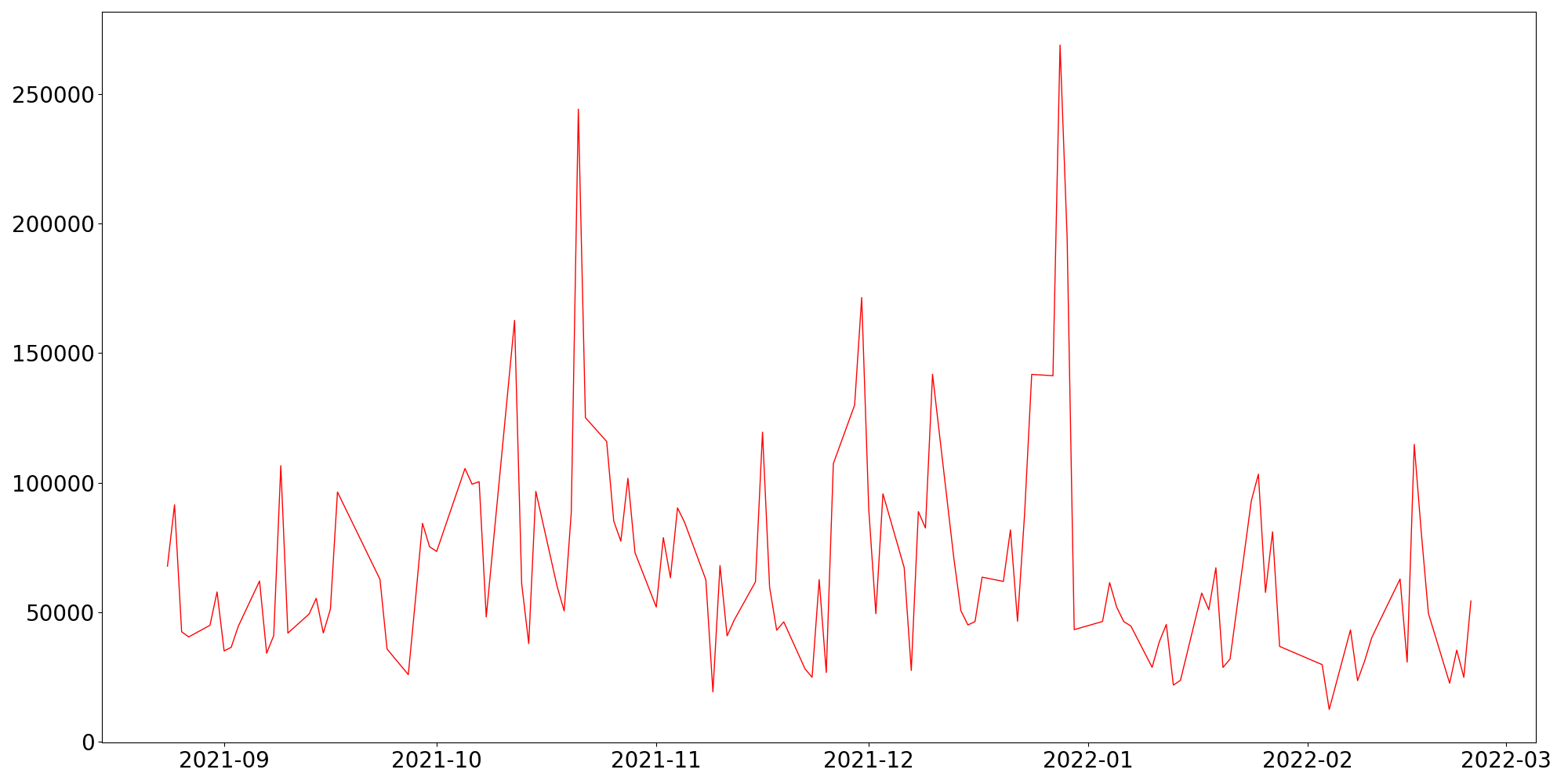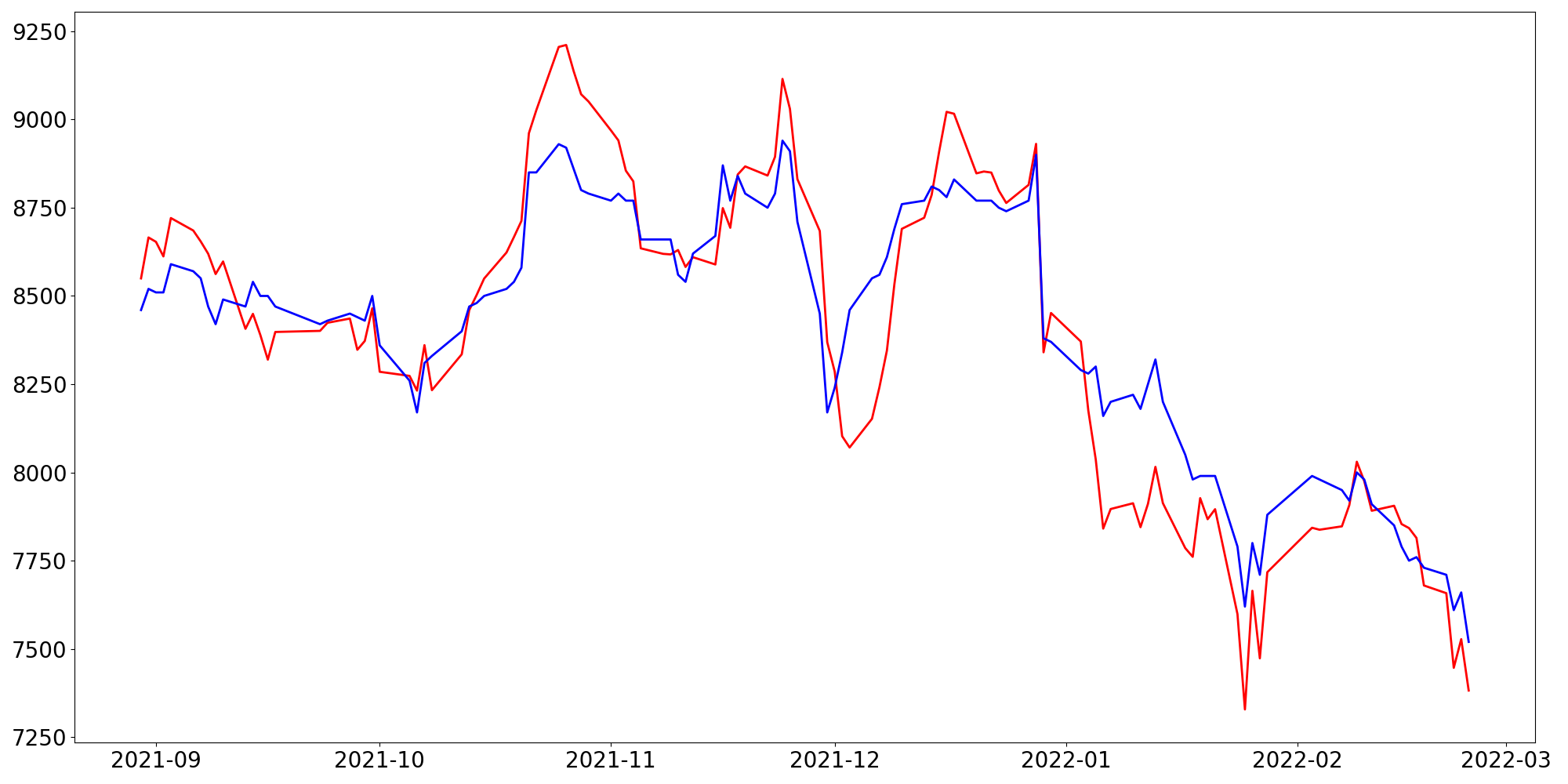 [ - : 실제값(종가) / - : 예측값(종가) ]