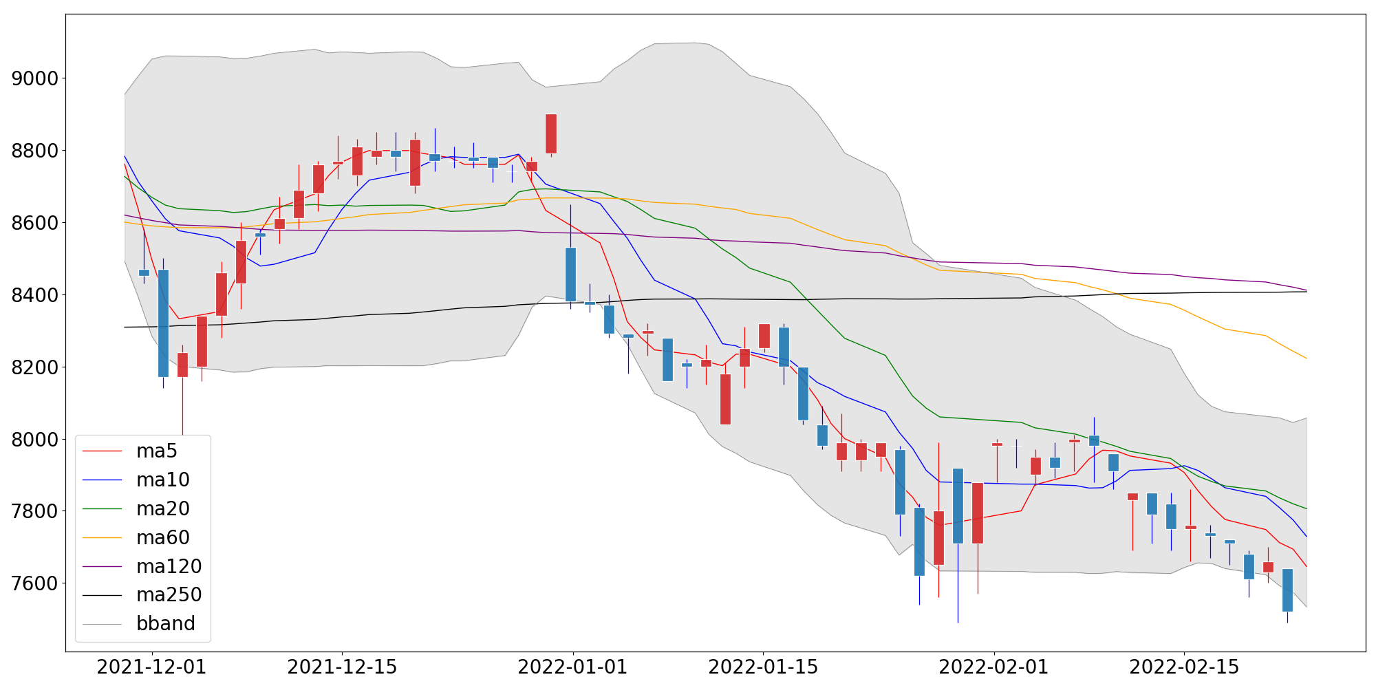 | 단순이동평균 | 8,222.50 | 8,411.25 | 8,406.76 |
