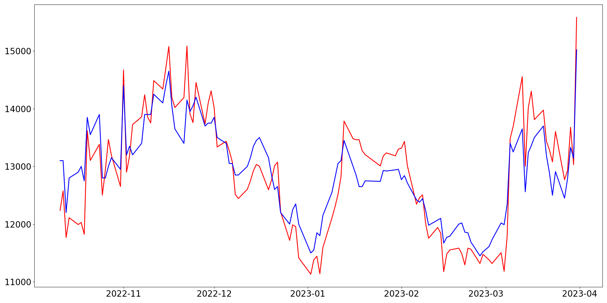 [ - : 실제값(종가) / - : 예측값(종가) ]