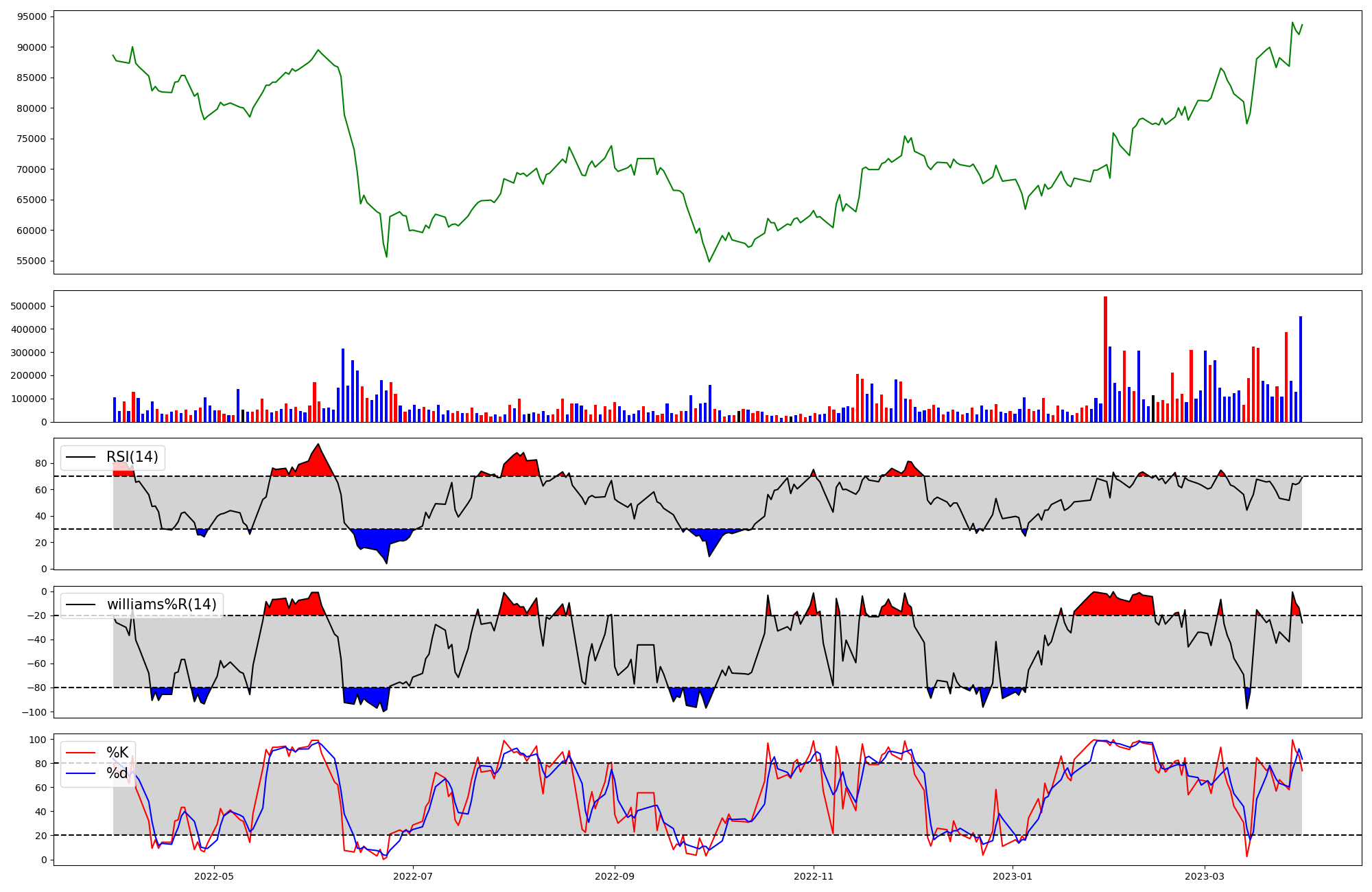 | RSI | Williams %R | stochastic(%K) | |