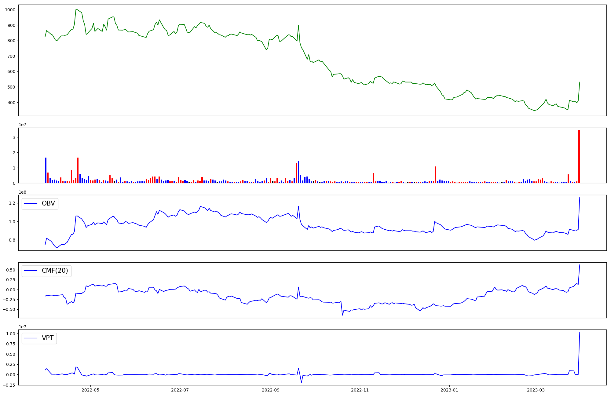 | OBV | CMF | VPT | |