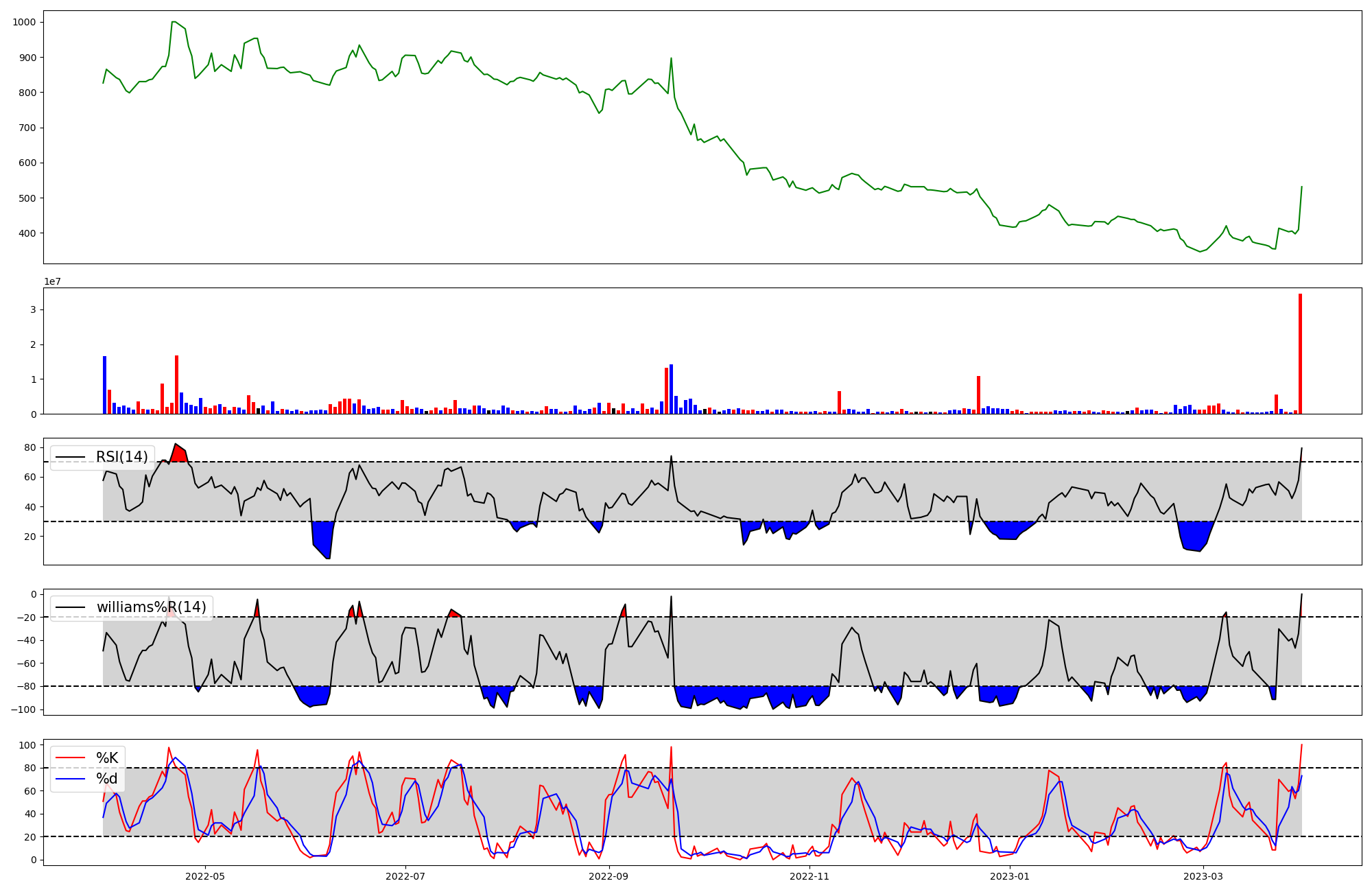 | RSI | Williams %R | stochastic(%K) | |