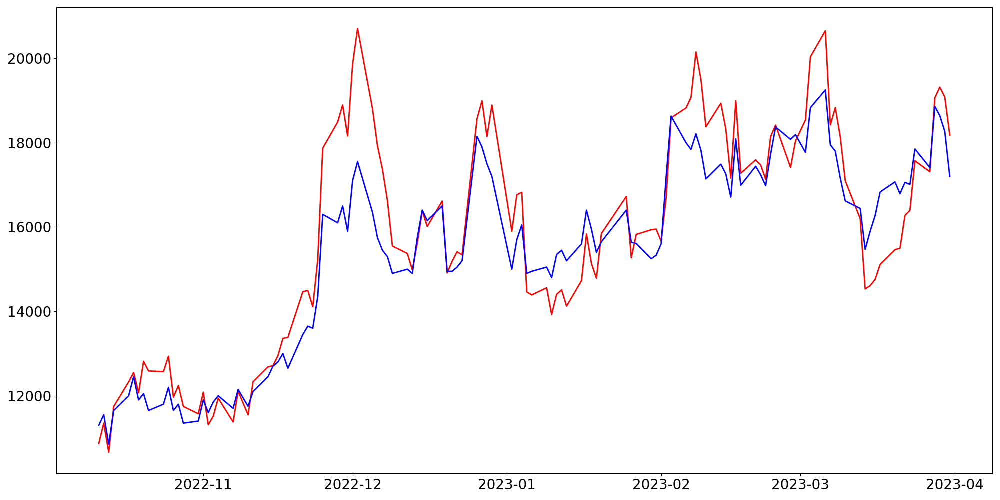 [ - : 실제값(종가) / - : 예측값(종가) ]