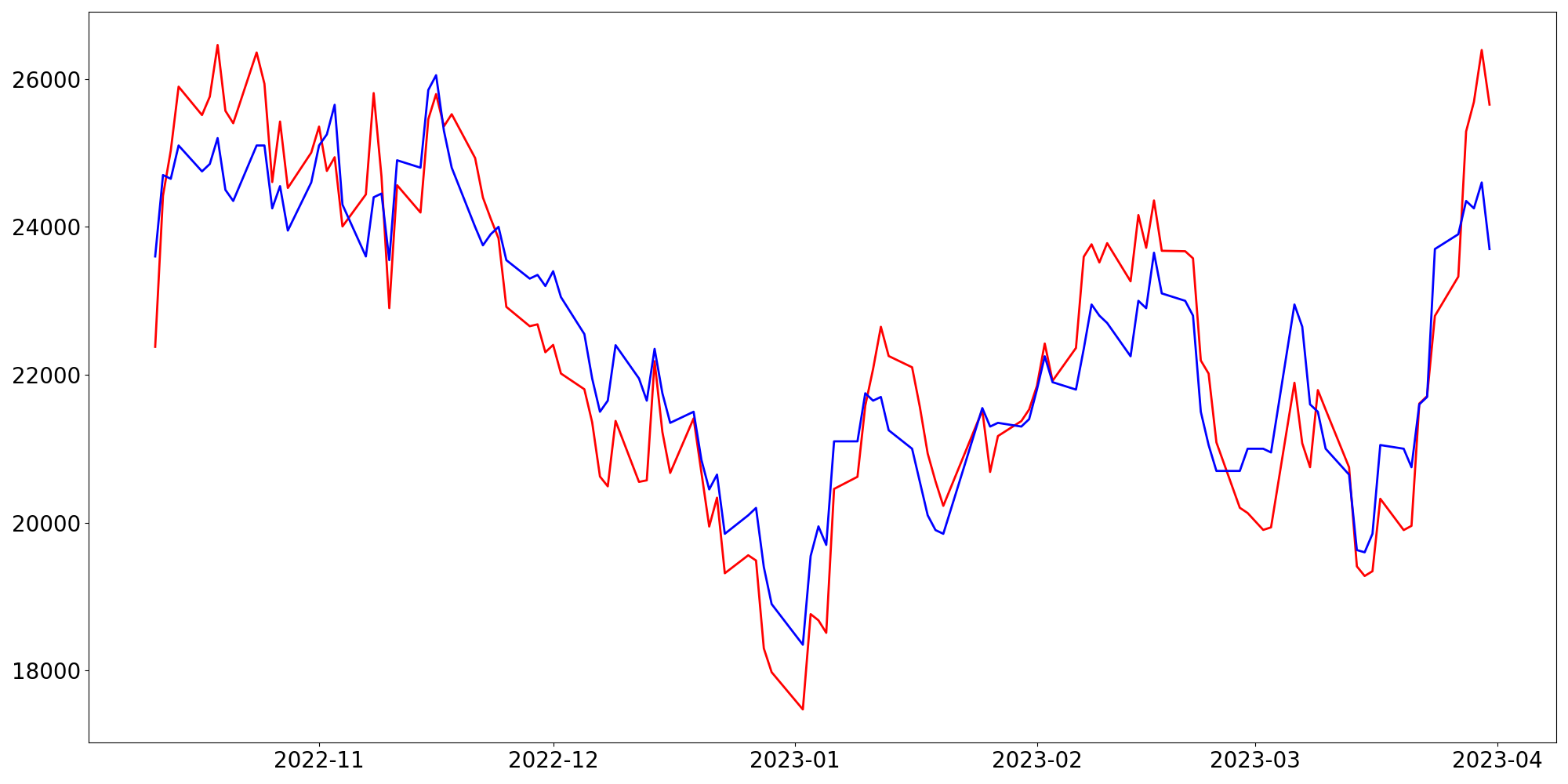 [ - : 실제값(종가) / - : 예측값(종가) ]