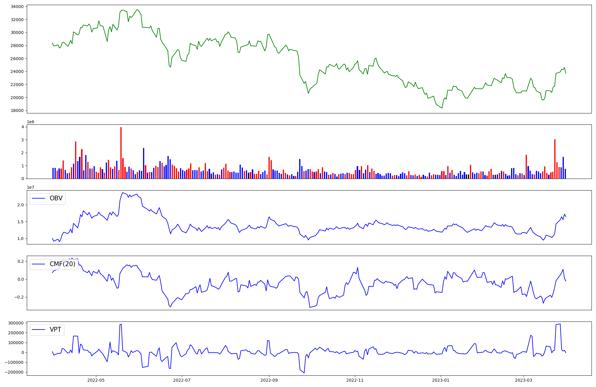 | OBV | CMF | VPT | |