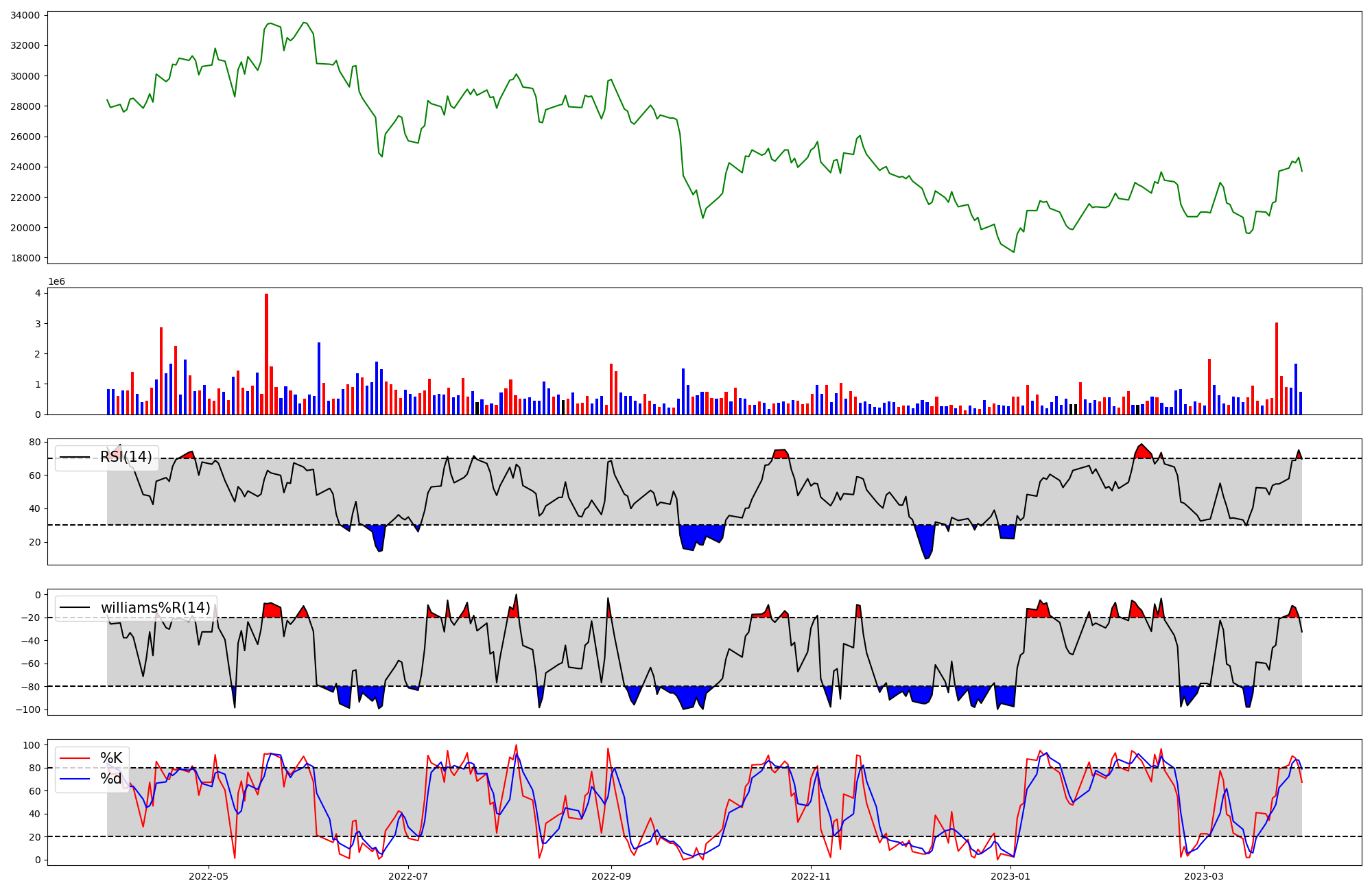 | RSI | Williams %R | stochastic(%K) | |