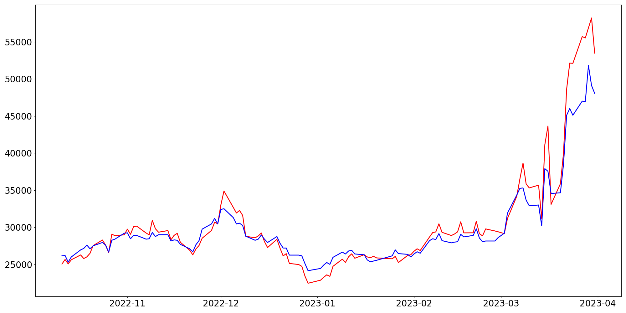 [ - : 실제값(종가) / - : 예측값(종가) ]