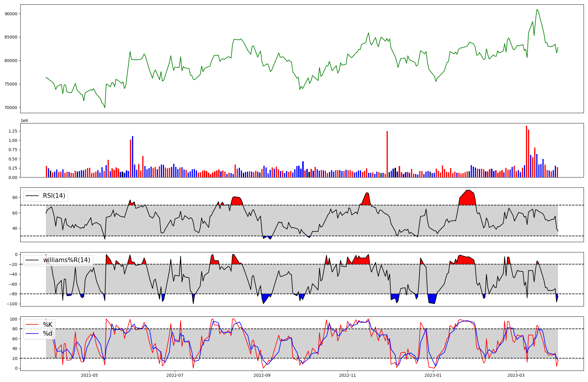 | RSI | Williams %R | stochastic(%K) | |