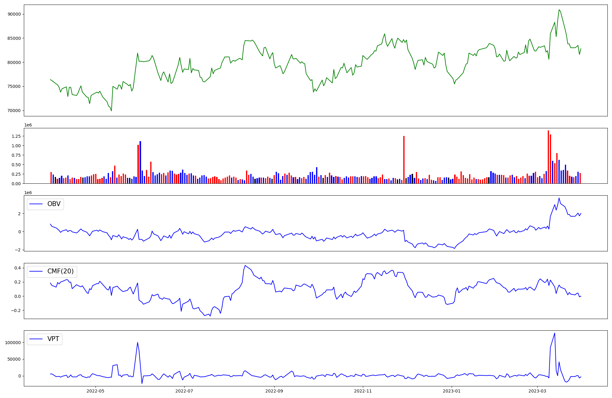 | OBV | CMF | VPT | |