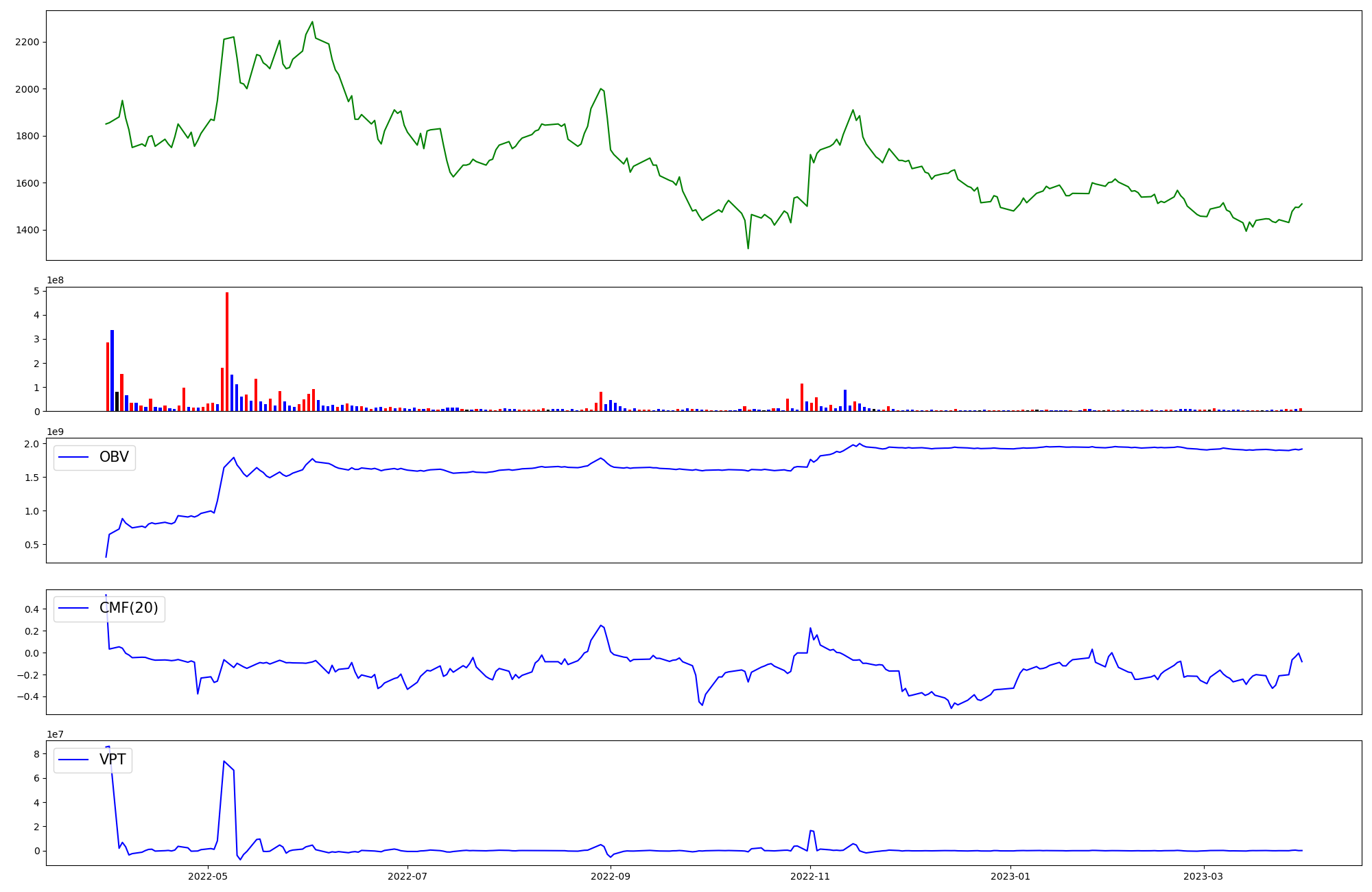 | OBV | CMF | VPT | |