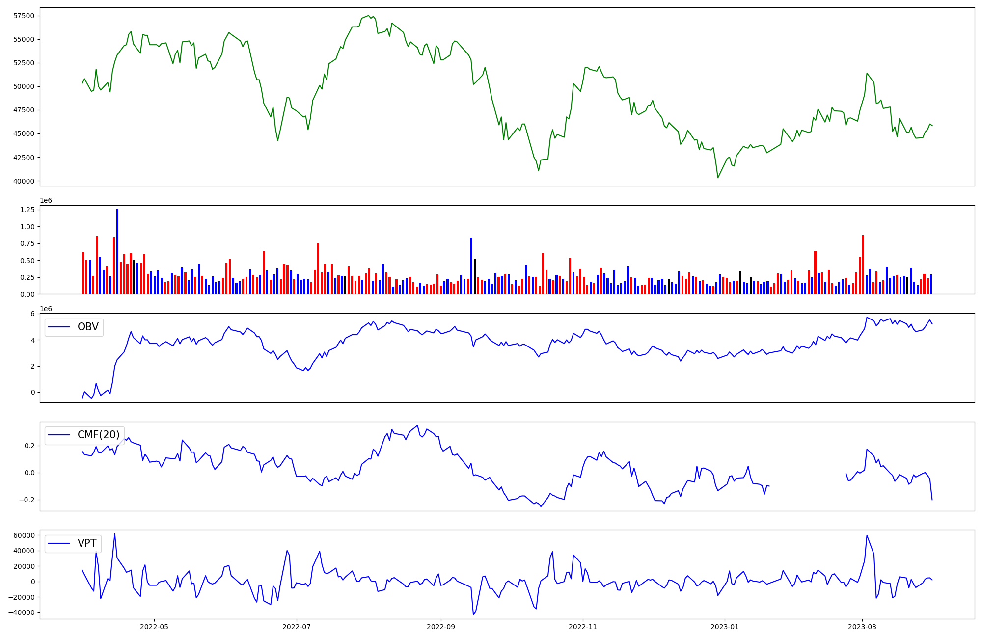 | OBV | CMF | VPT | |