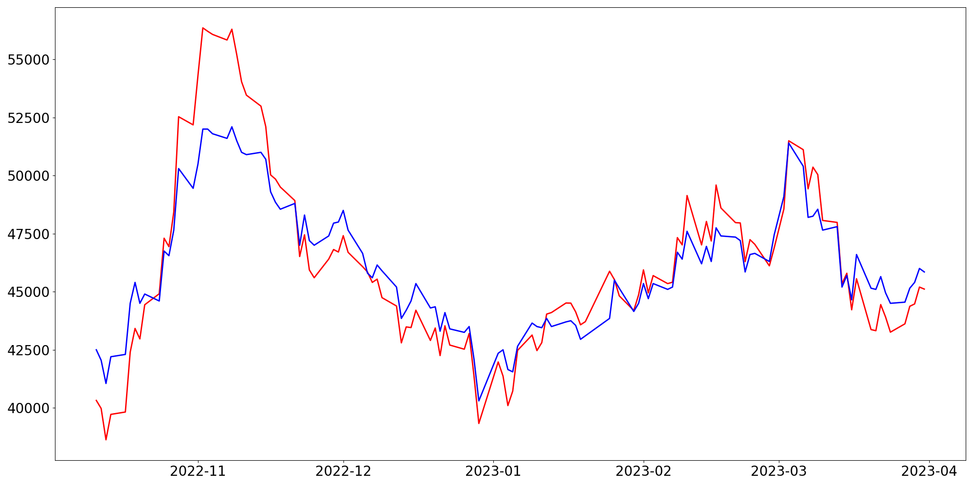 [ - : 실제값(종가) / - : 예측값(종가) ]