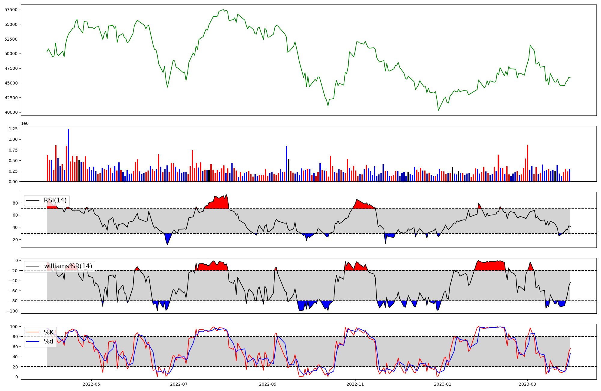 | RSI | Williams %R | stochastic(%K) | |