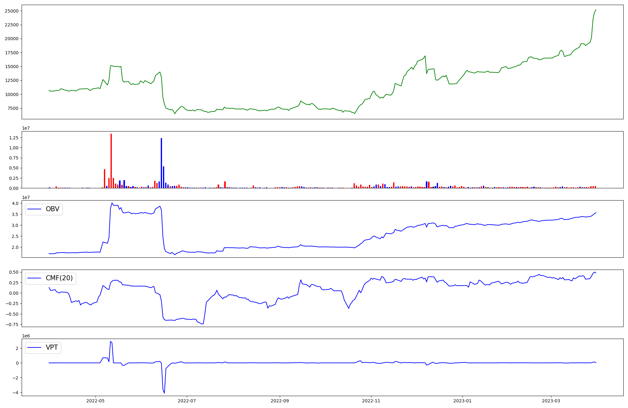 | OBV | CMF | VPT | |