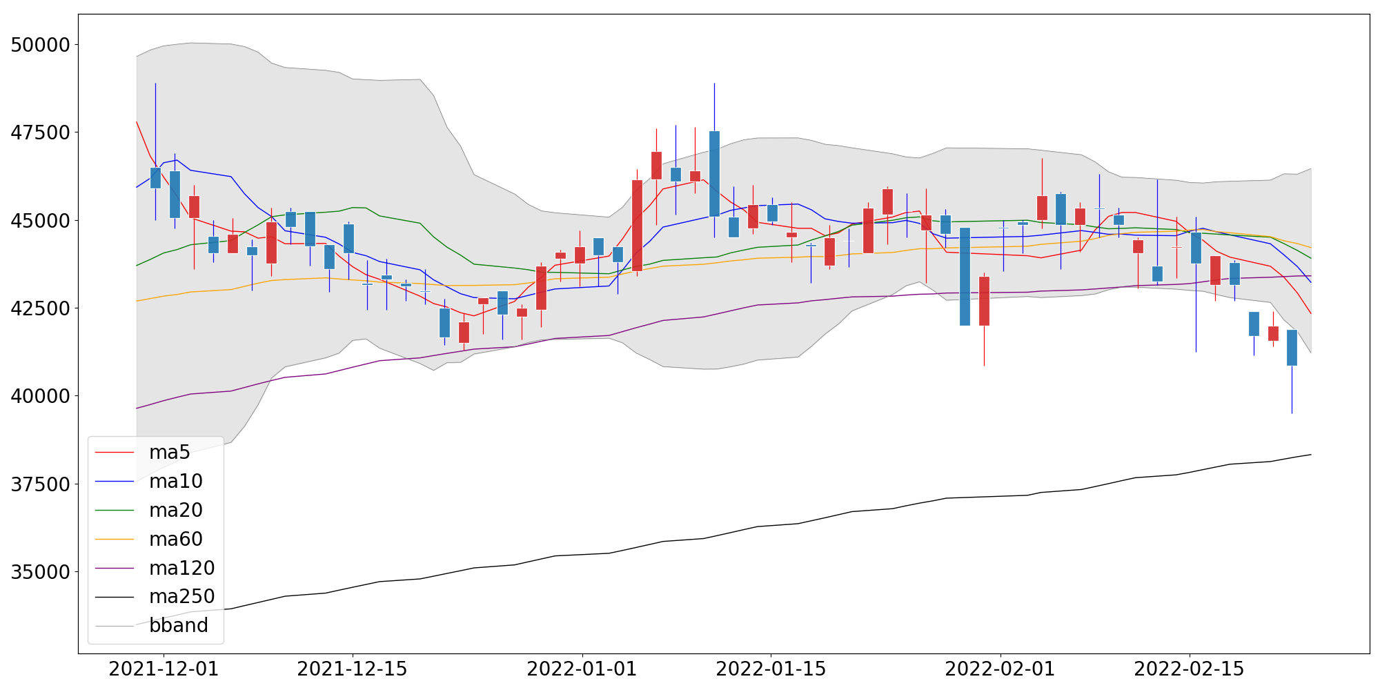 | 단순이동평균 | 44,212.50 | 43,408.75 | 38,323.40 |