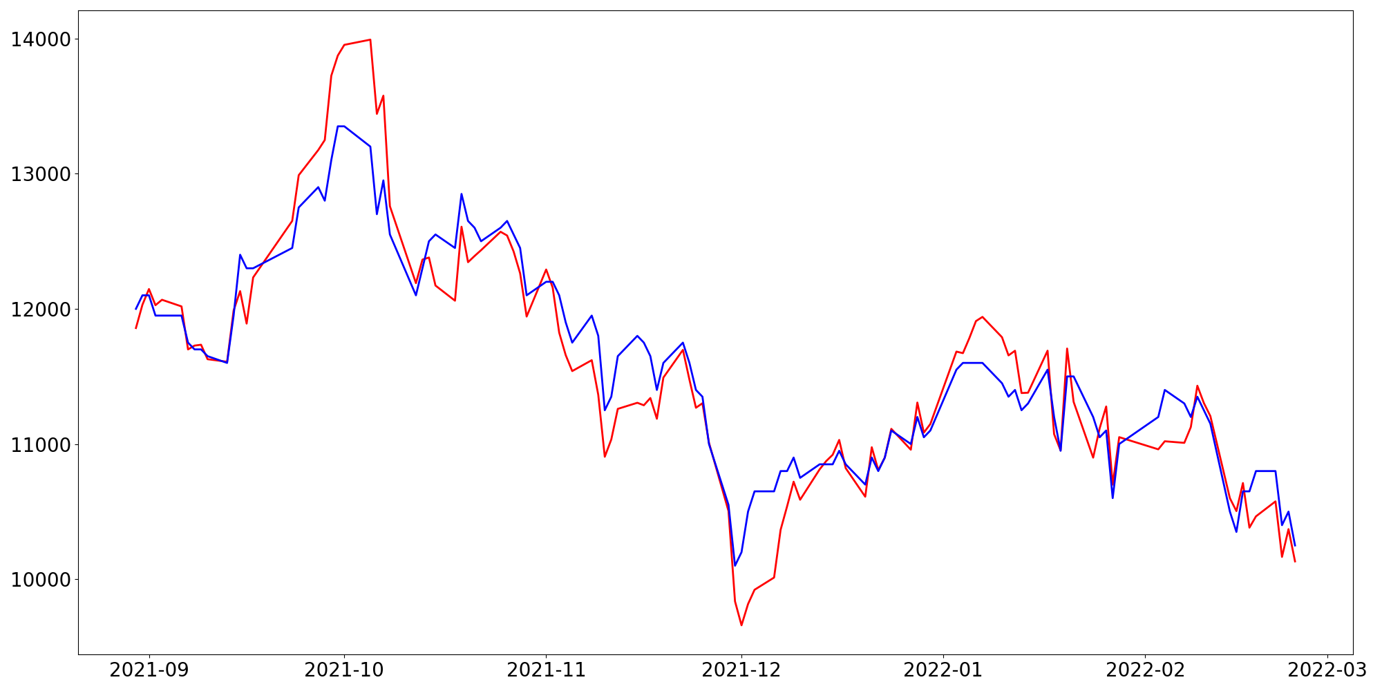 [ - : 실제값(종가) / - : 예측값(종가) ]