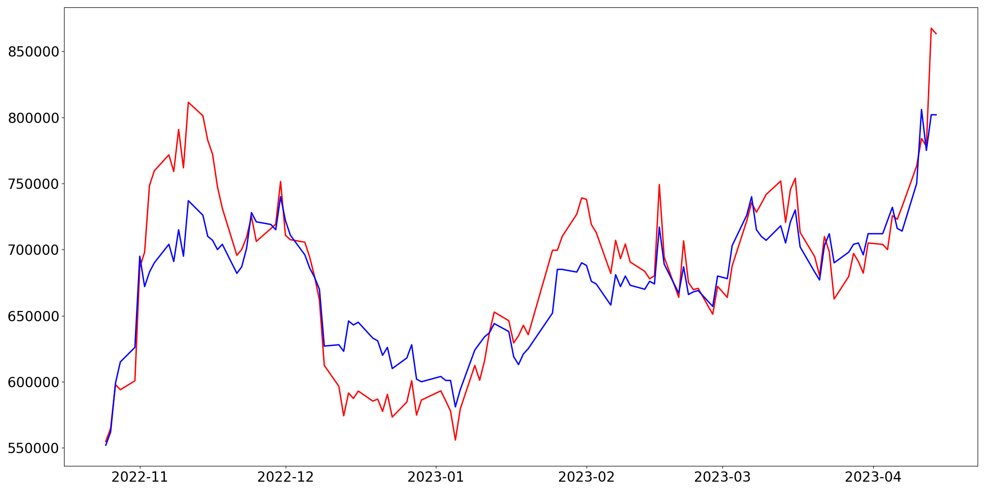 [ - : 실제값(종가) / - : 예측값(종가) ]