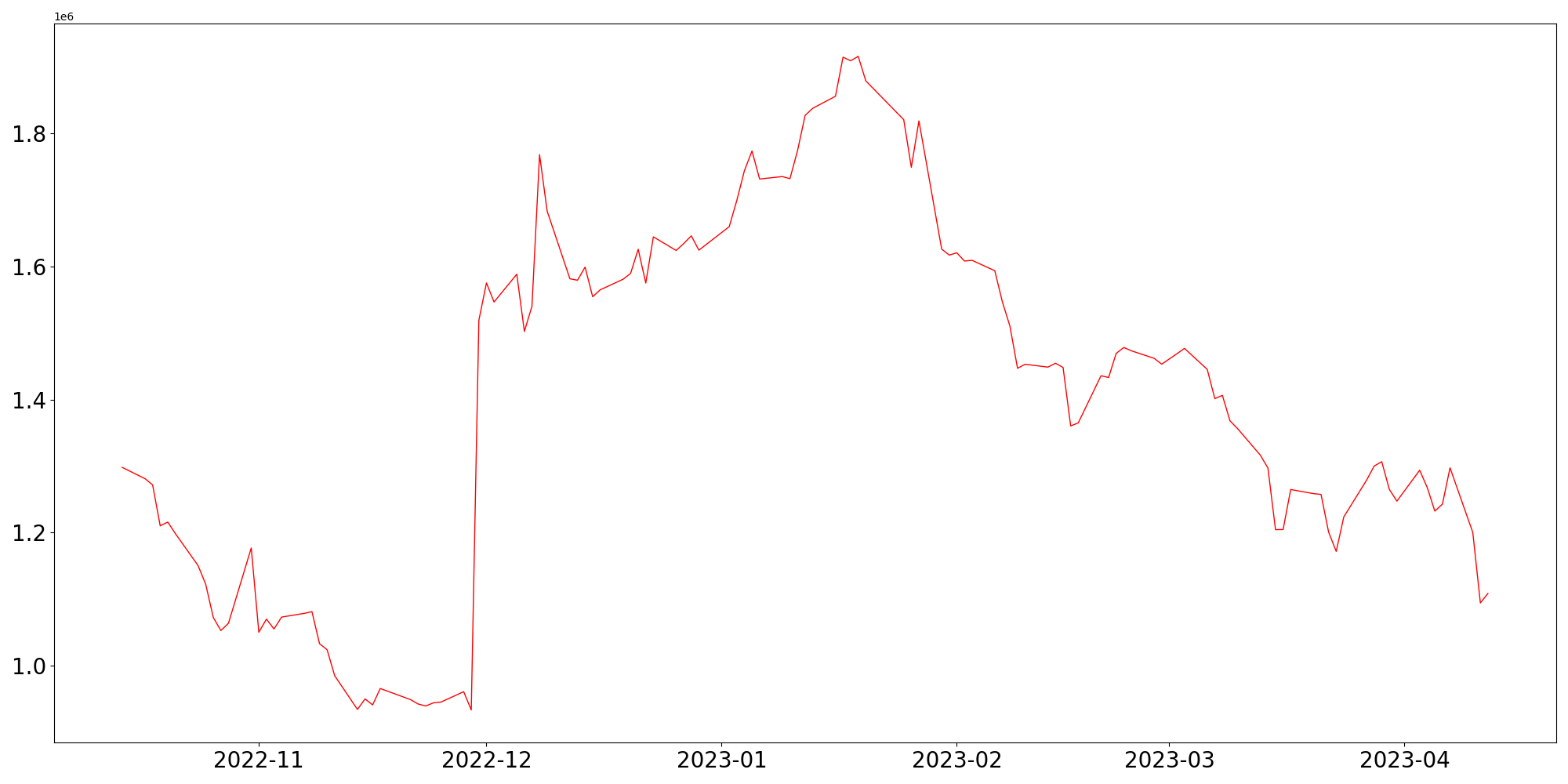 [ - : 실제값(종가) / - : 예측값(종가) ]