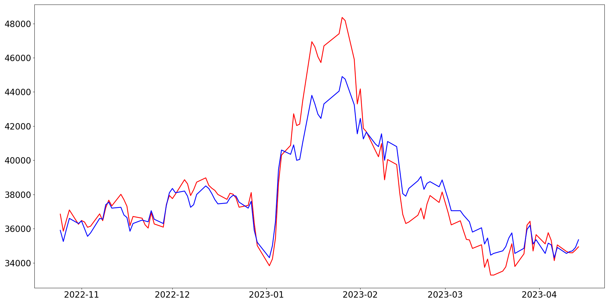 [ - : 실제값(종가) / - : 예측값(종가) ]