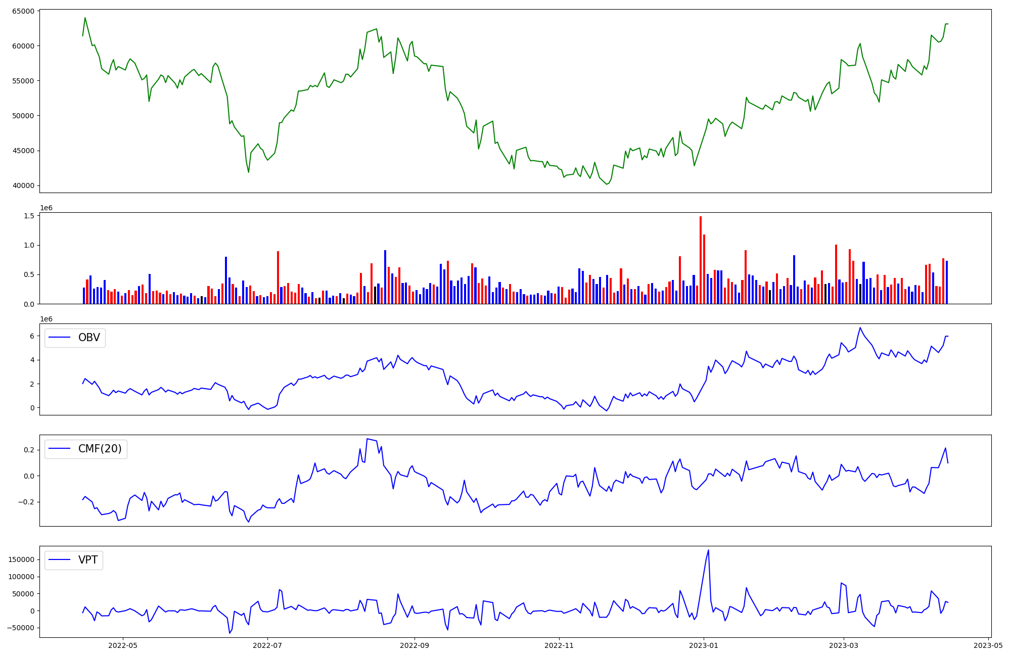 | OBV | CMF | VPT | |