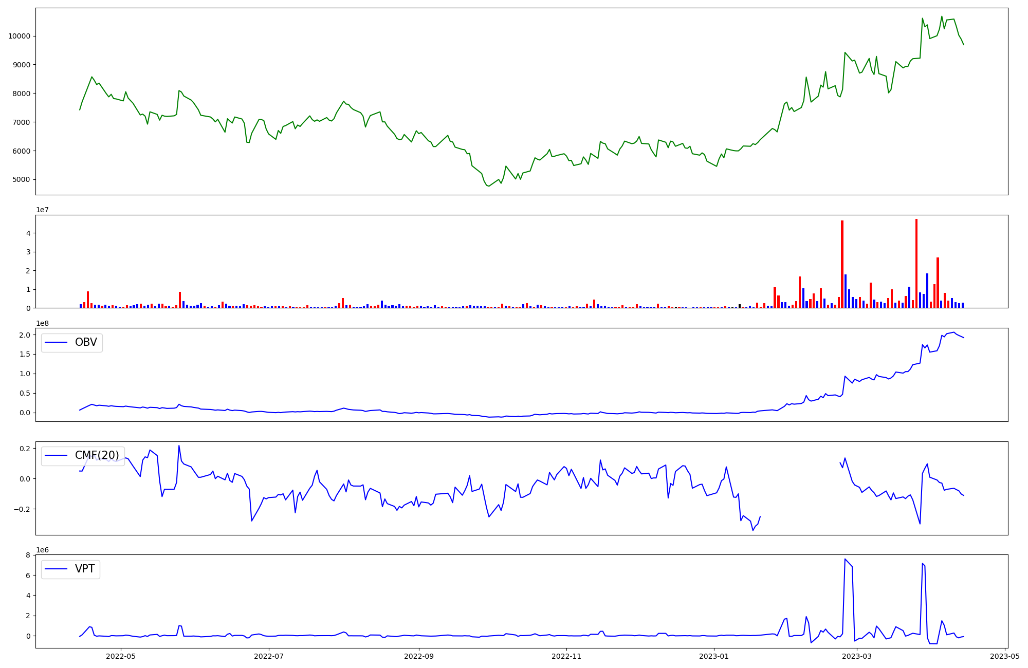 | OBV | CMF | VPT | |