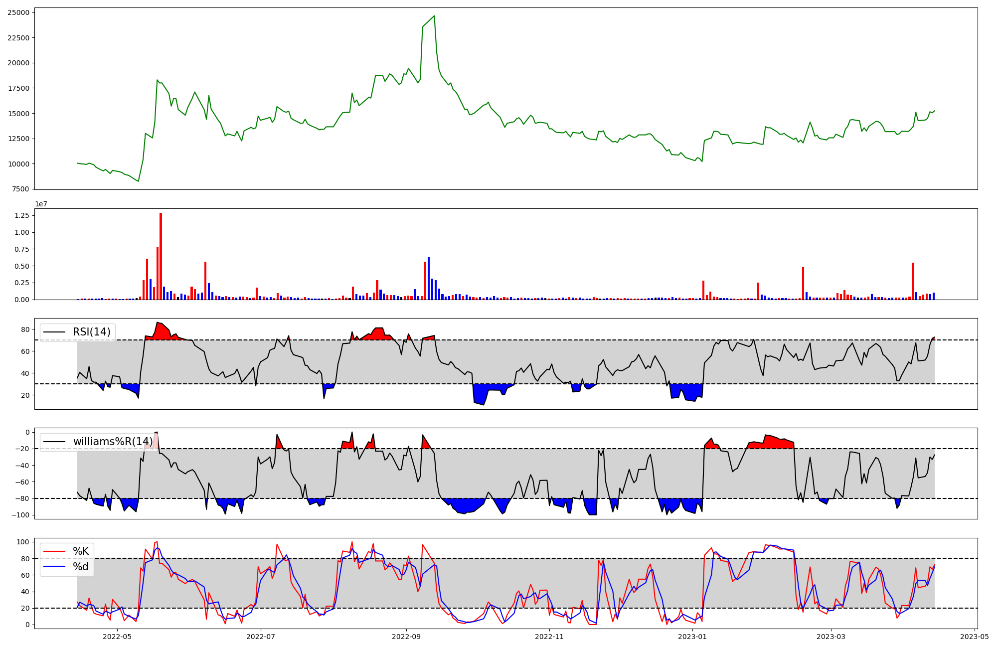 | RSI | Williams %R | stochastic(%K) | |