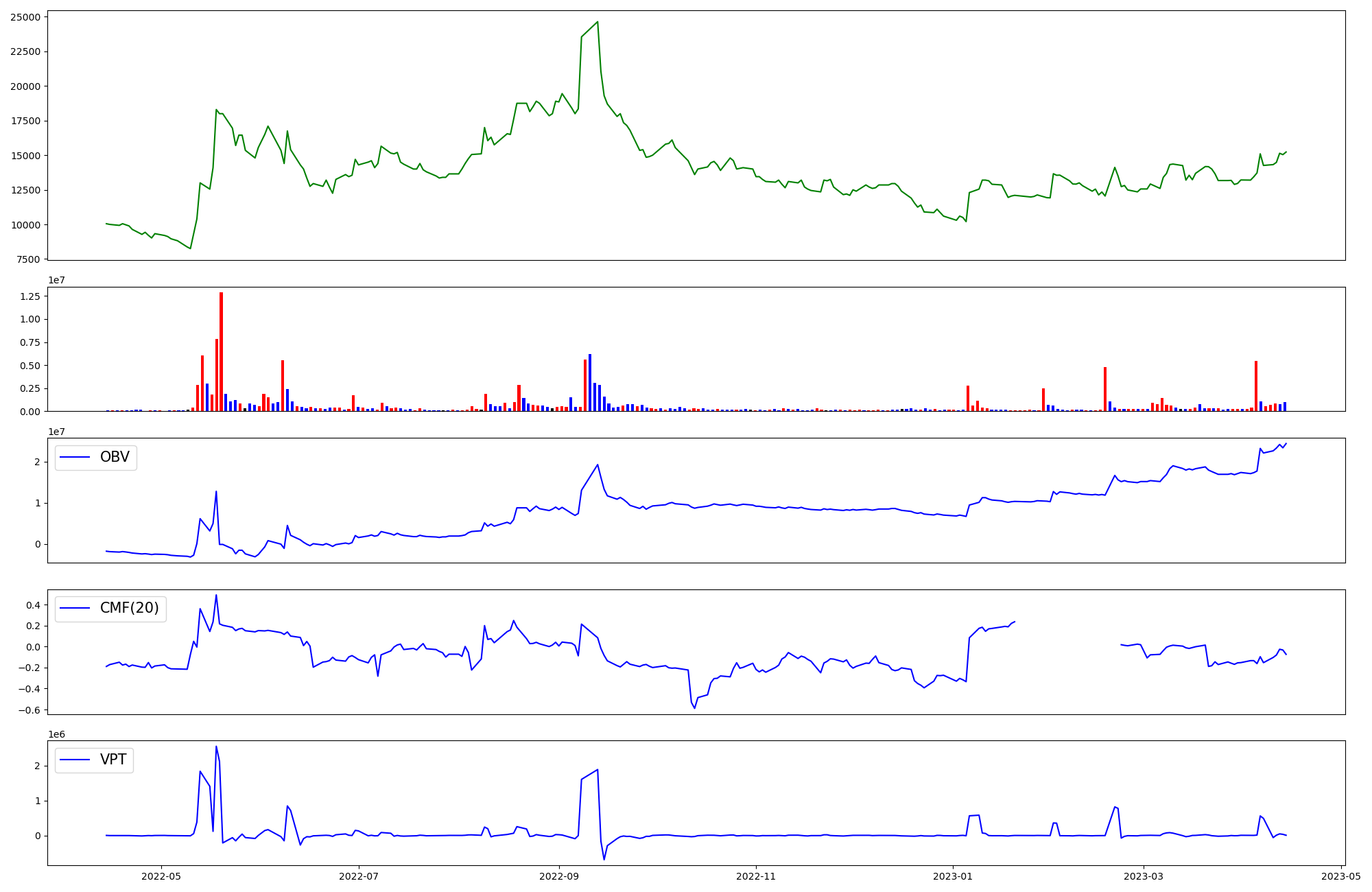 | OBV | CMF | VPT | |