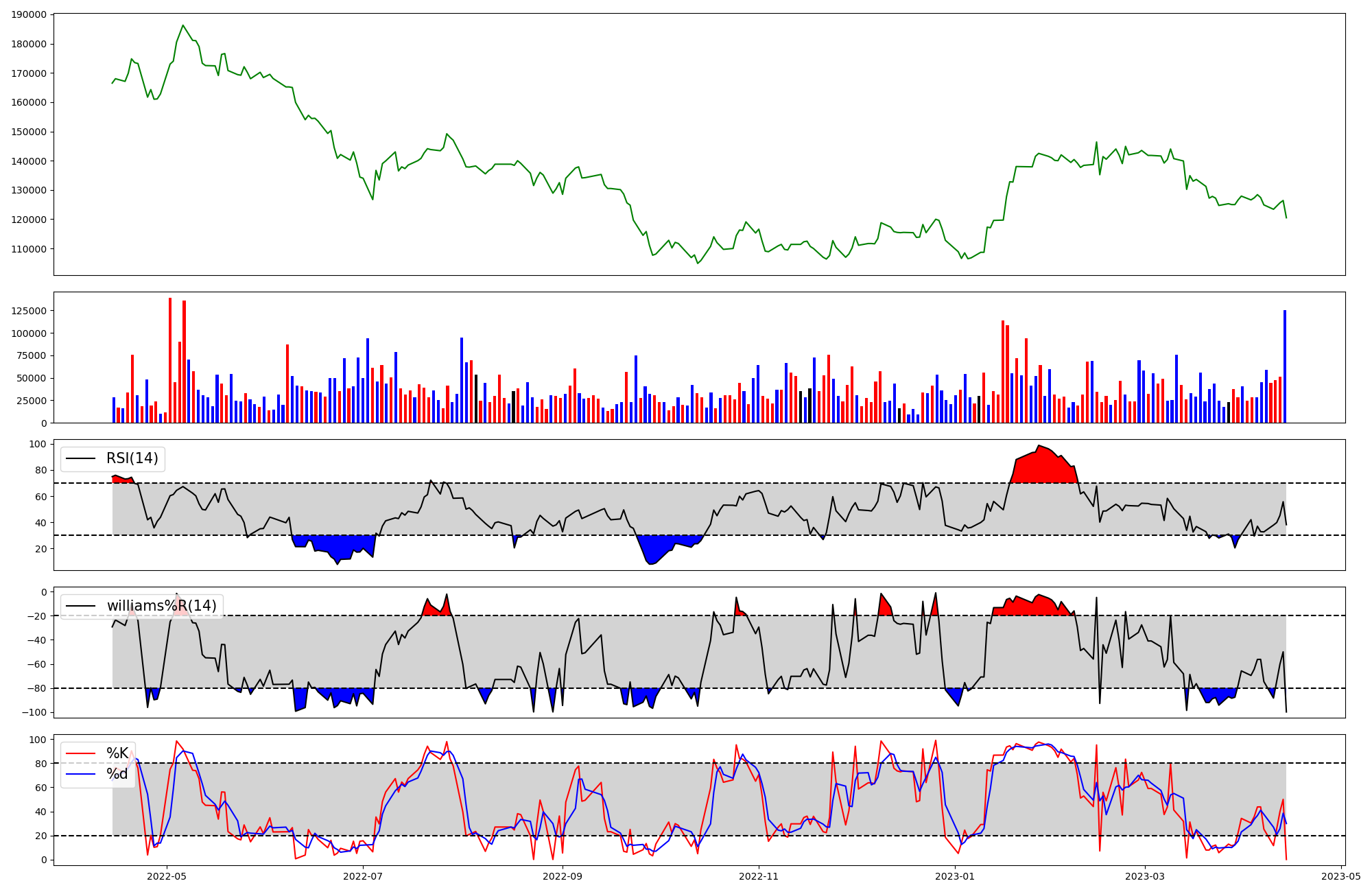 | RSI | Williams %R | stochastic(%K) | |