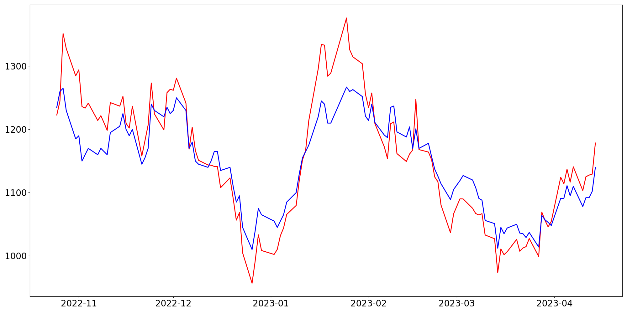 [ - : 실제값(종가) / - : 예측값(종가) ]