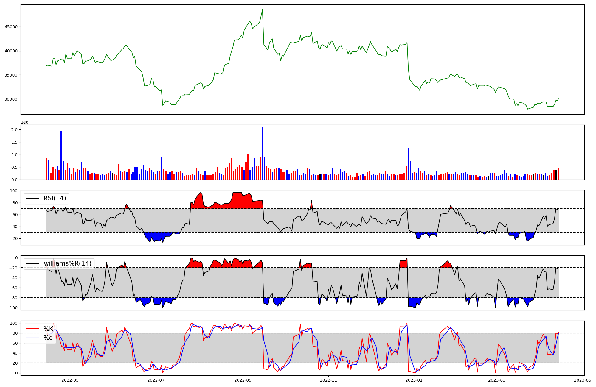 | RSI | Williams %R | stochastic(%K) | |