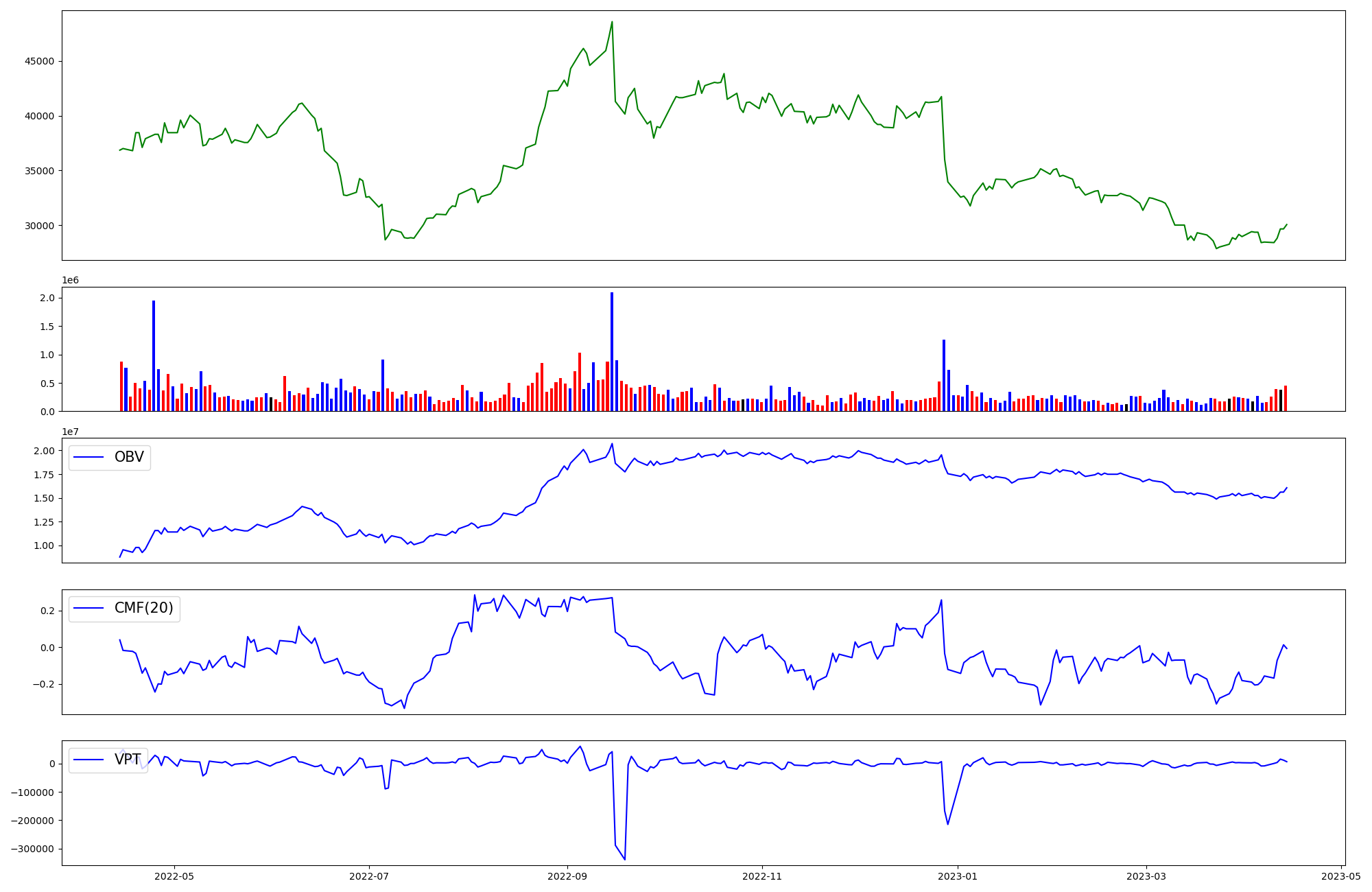 | OBV | CMF | VPT | |