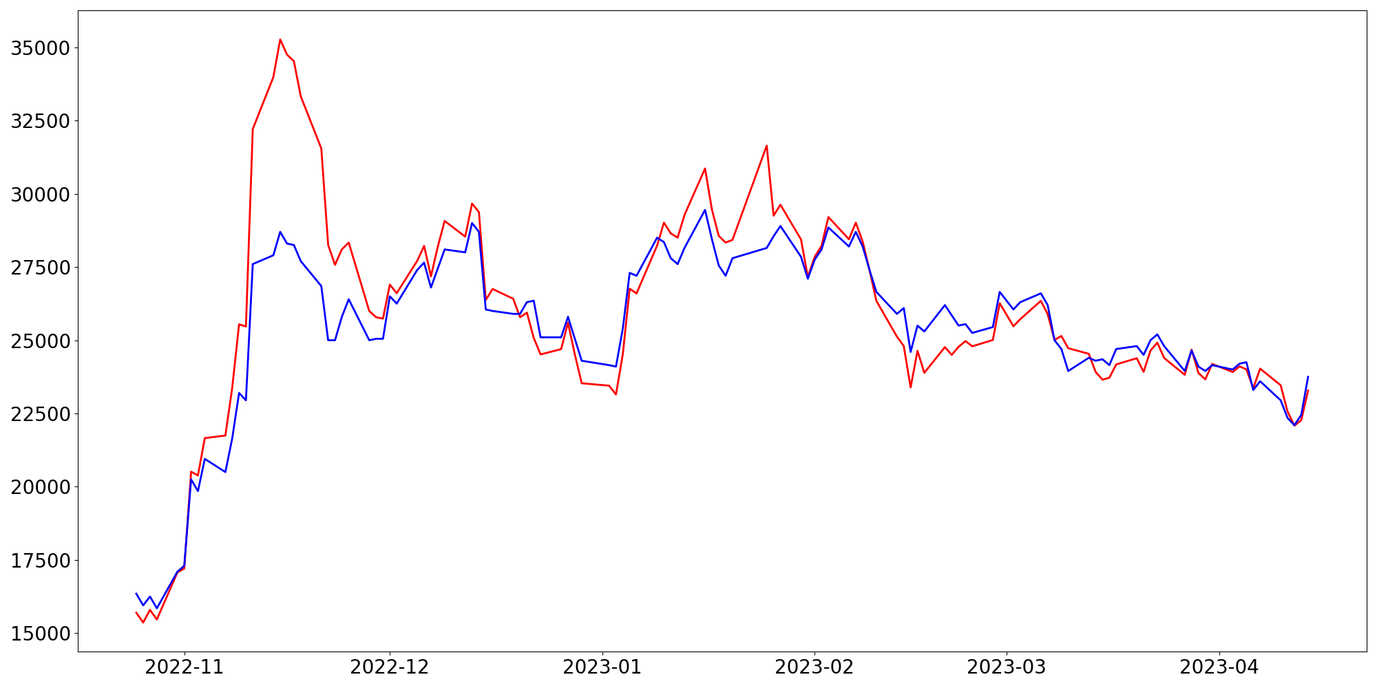 [ - : 실제값(종가) / - : 예측값(종가) ]