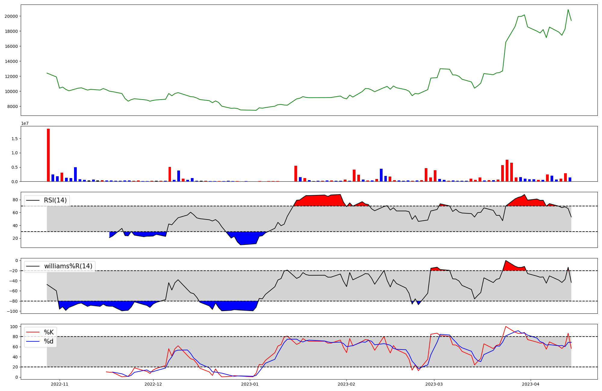RSI | Williams %R | stochastic(%K) | |