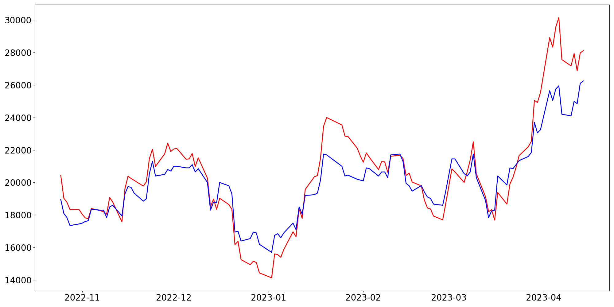 [ - : 실제값(종가) / - : 예측값(종가) ]