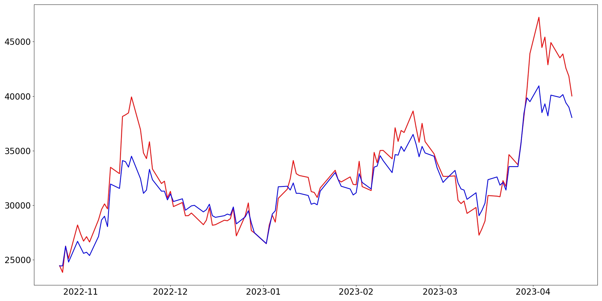 [ - : 실제값(종가) / - : 예측값(종가) ]