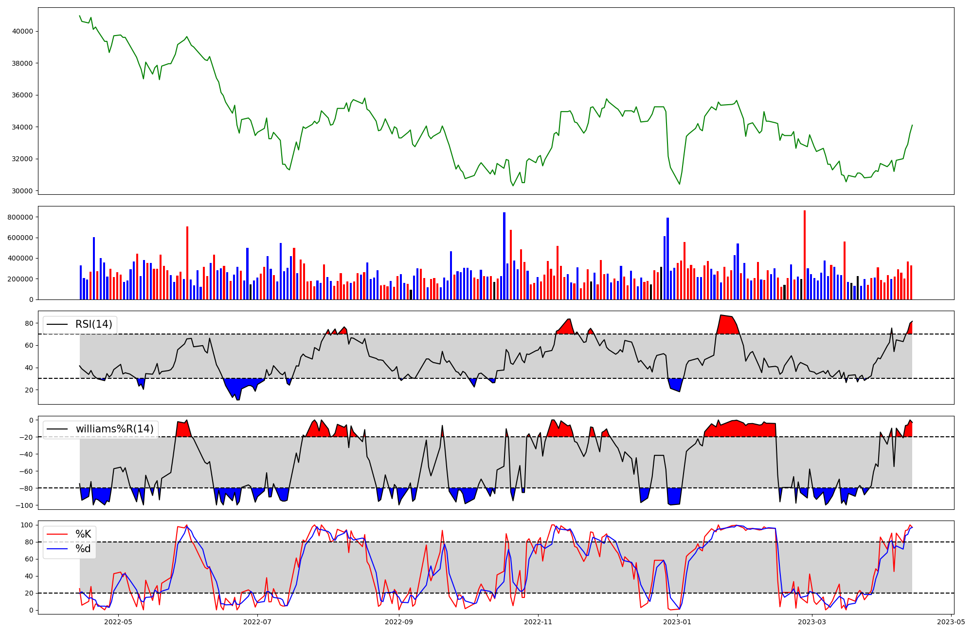RSI | Williams %R | stochastic(%K) | |
