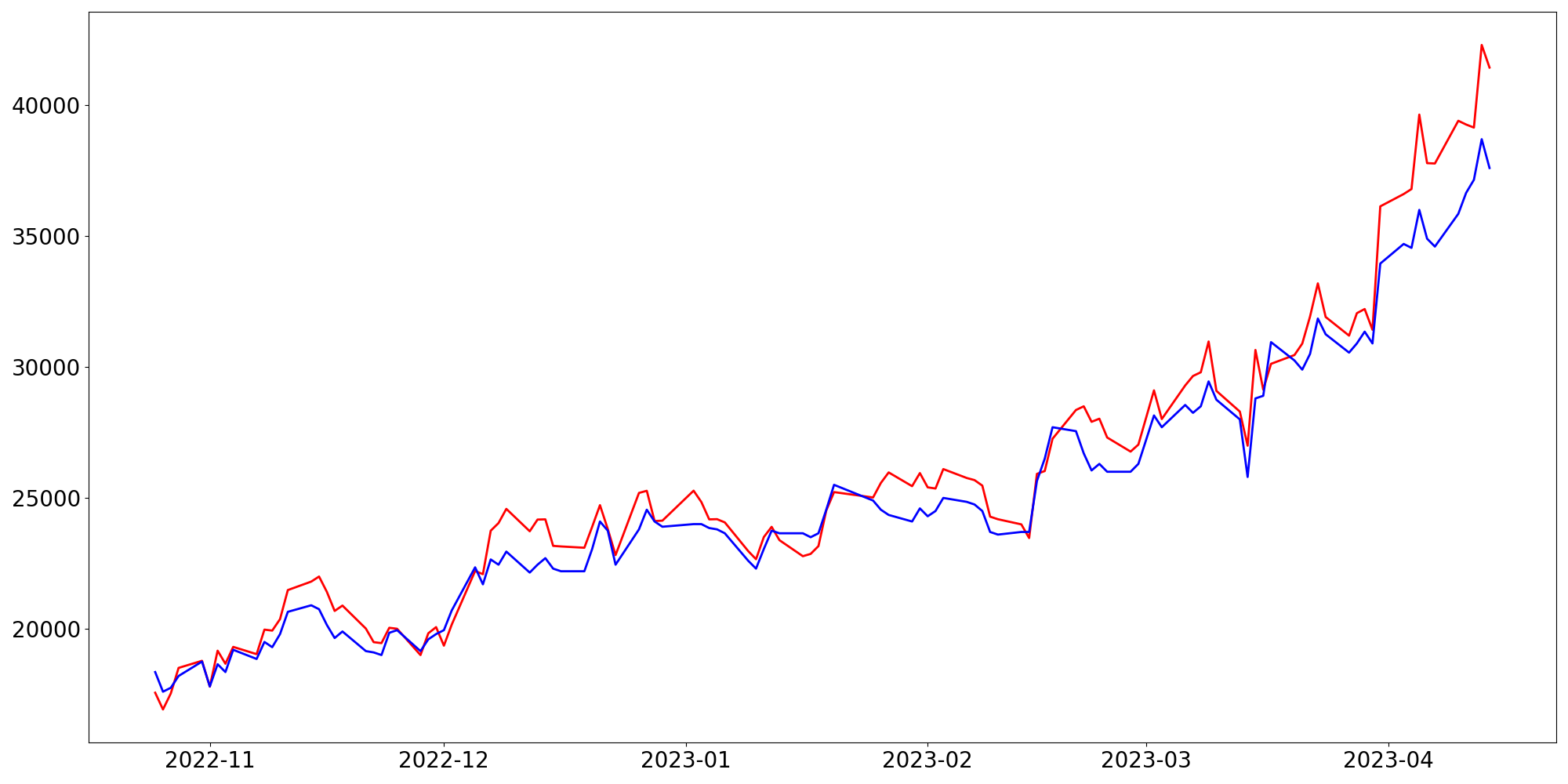 [ - : 실제값(종가) / - : 예측값(종가) ]