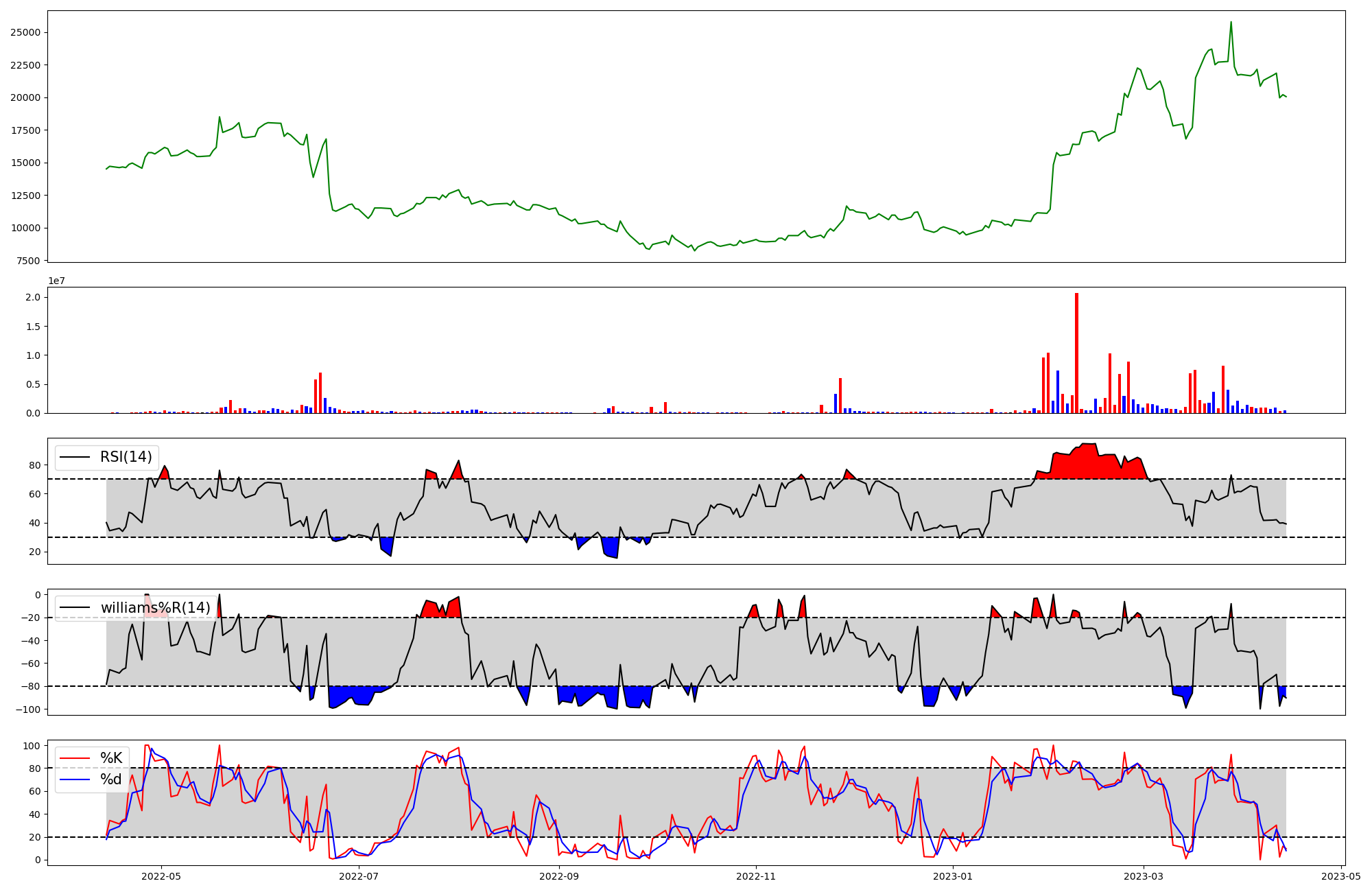 RSI | Williams %R | stochastic(%K) | |