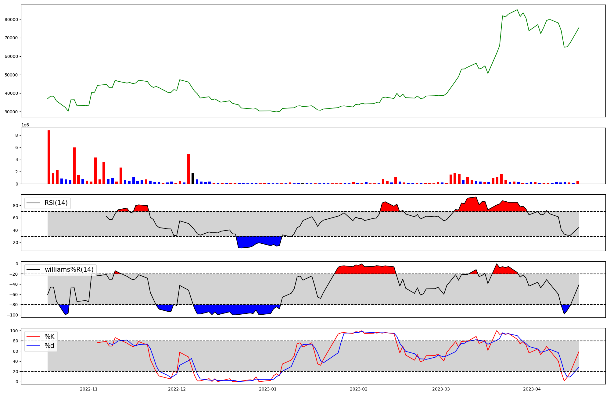 □ 장기 : 현재 종가가 장기(250일) 이동평균값(nan원)을 상회 하여 장기적 추세 상승 중