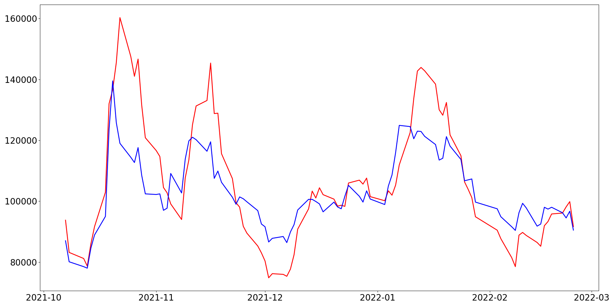 [ - : 실제값(종가) / - : 예측값(종가) ]