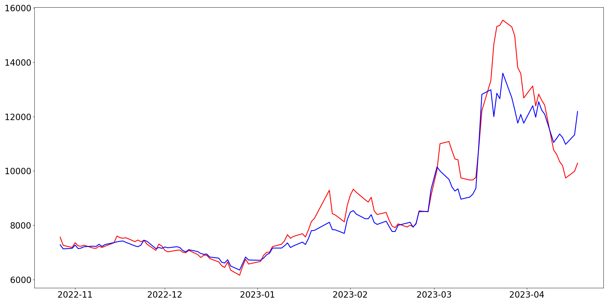[ - : 실제값(종가) / - : 예측값(종가) ]