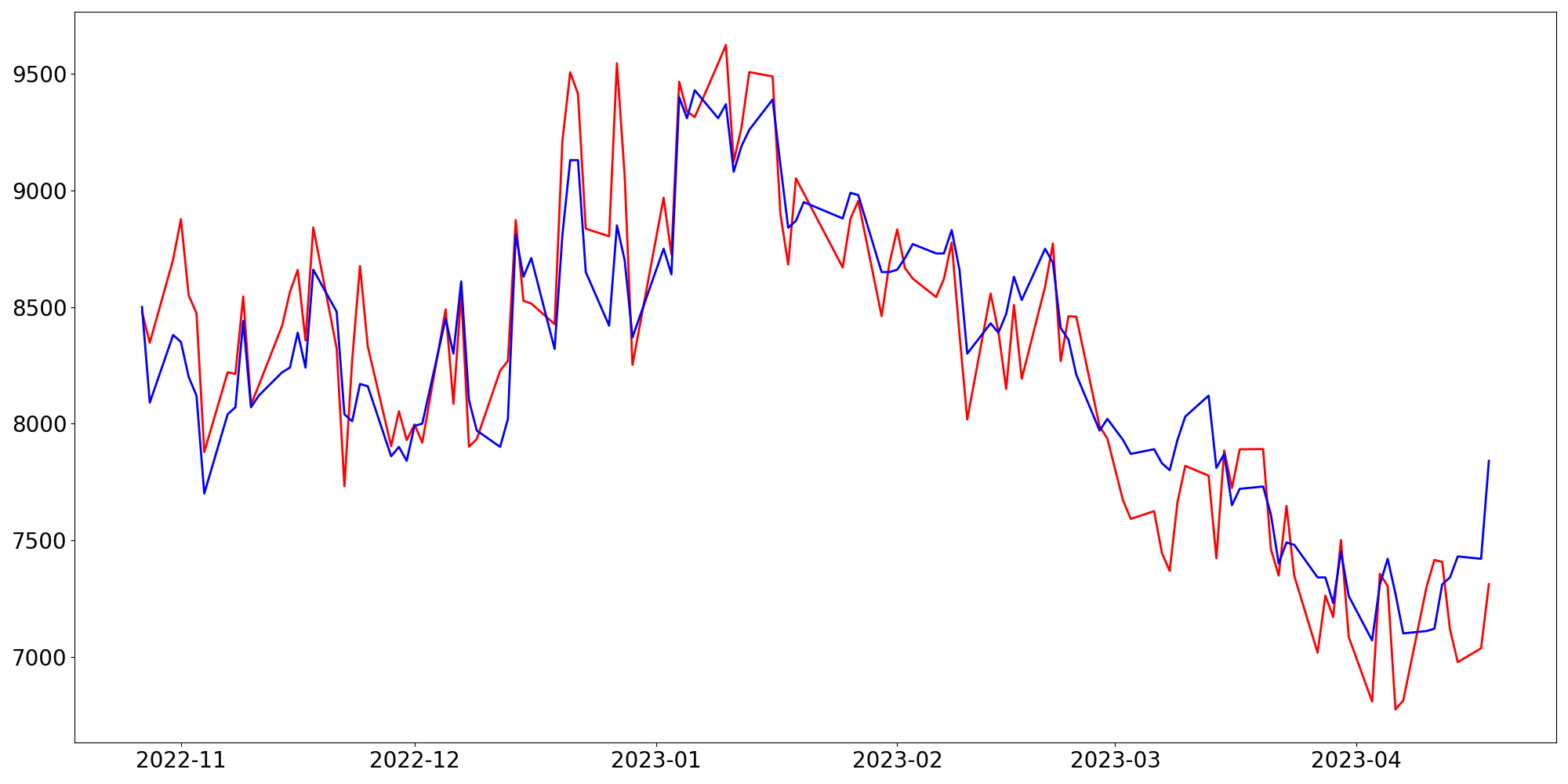 [ - : 실제값(종가) / - : 예측값(종가) ]
