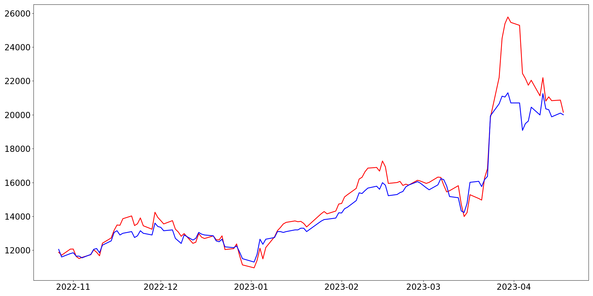 [ - : 실제값(종가) / - : 예측값(종가) ]